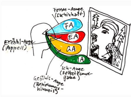 - Das Erzähl-Auge (abgeleitet von der Ebene des Apells)